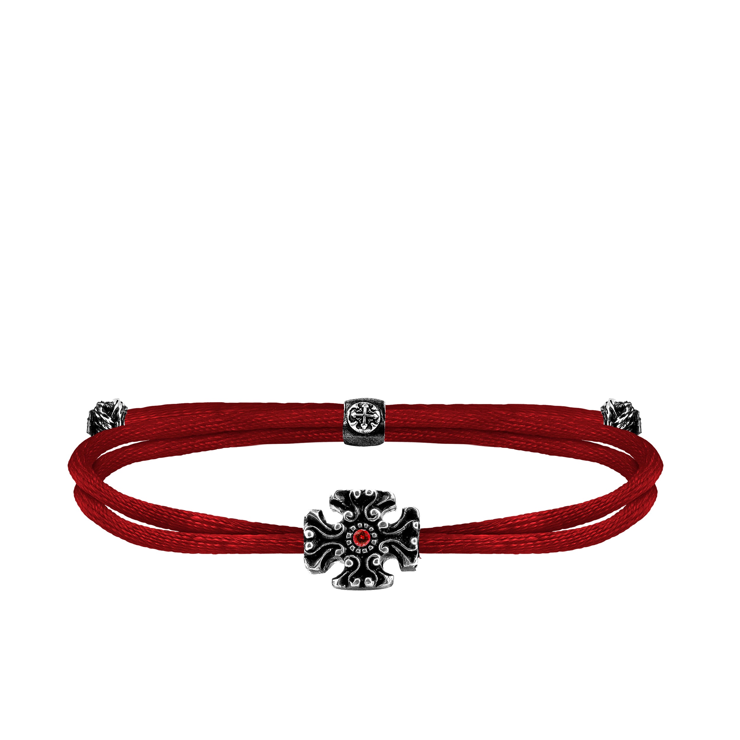 Simple fashion shows the charm. Meet Charm Valentina, one of the Be Unique's most beloved bracelets. This bracelet features Valentina Petit cross in Antique finish with Shiny Red stone, Be Unique's Logo Tunnel Closure System, two Be Unique's patented Glossy knots and silky soft rope in Flame Red colour. Centrally positioned cross element with heart shaped ends is a hidden love symbol and reference to traditions of Orthodox jewelery design. Skin friendly rope material and non-allergic silver oxidation process ensure it is an ideal piece for everyday and even warm-weather wear. Can be worn solo or stacked with other pieces. This bracelet can be personalised by engraving initials on the Cross symbol. Very comfortable and easy to wear.