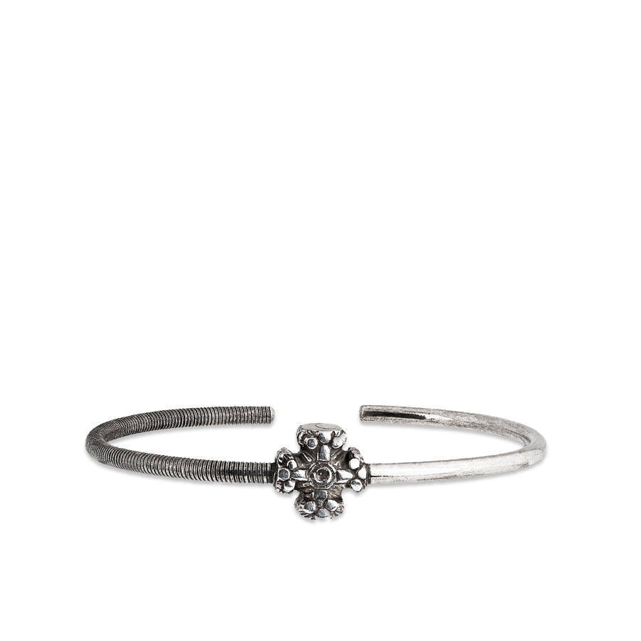 925 oxidized sterling silver with antique or blue steel finish Clean your jewelry gently and frequently with a soft dry cloth to maintain its original finish. It is not advised to use silver polish or silver dip as they can damage the delicate oxidized details.